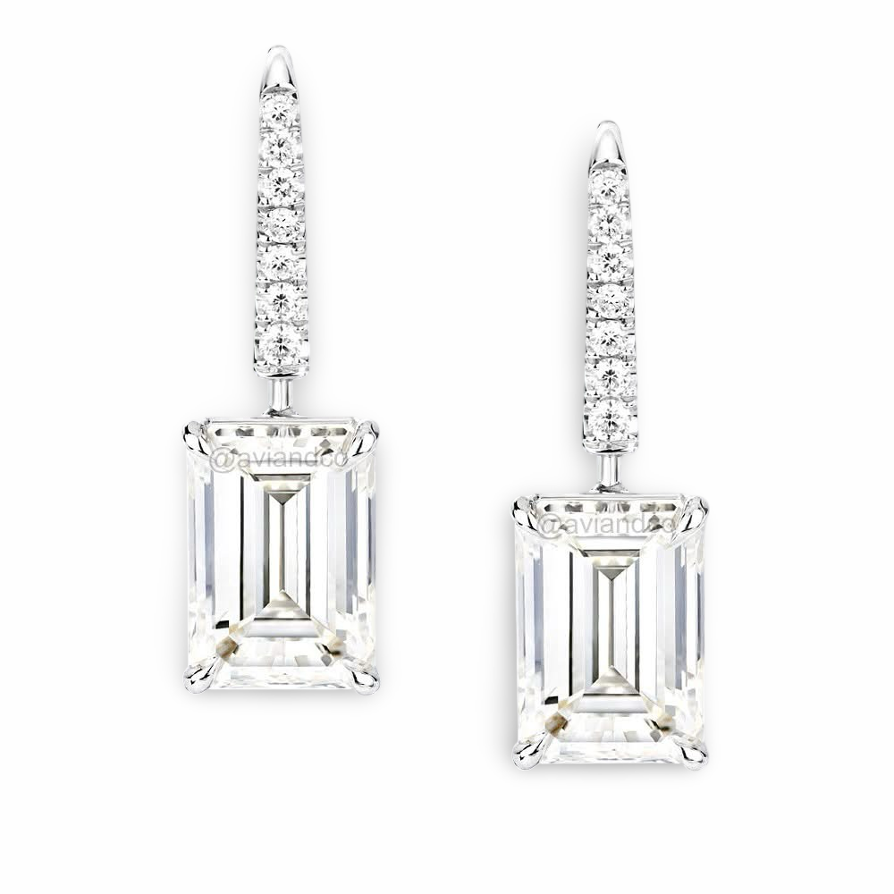 Adorning the hoops are emerald cut cubic zirconia stones that captivate with their mesmerizing sparkle. Each stone is carefully faceted to reflect light from every angle, mimicking the radiance of genuine diamonds. The emerald cut adds a touch of vintage-inspired charm, while the clear cubic zirconia stones create an air of sophistication.